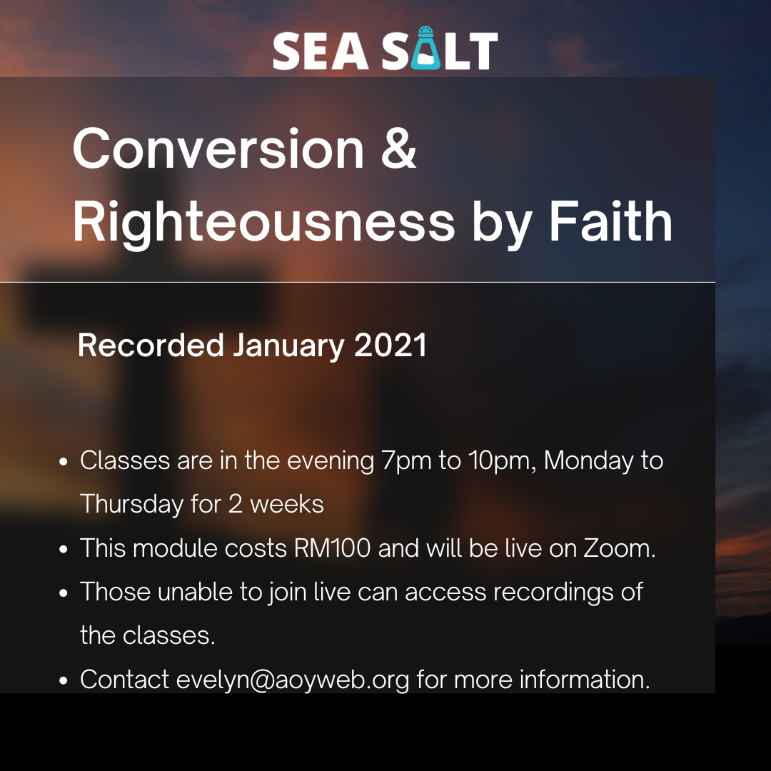 Following up from the AOY conference in December 2013 which sought out youthful labourers for the Master’s vineyard, AOY SALT was born to train and mobilize these armies of workers to be God’s helping hands. AOY SALT is an evangelistic school that provides young people with an avenue to join mission work and test out their calling for ministry. SALT is committed to raising up those who are called to win souls in their communities and serve as a Bible worker for local churches.